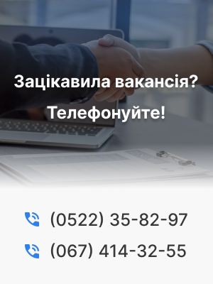ЗВЕРТАТИСЯ: м. Кропивницький, Студентський бульвар 15, відділ кадрів.